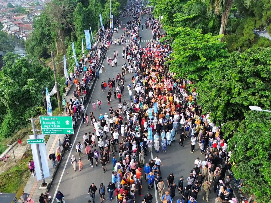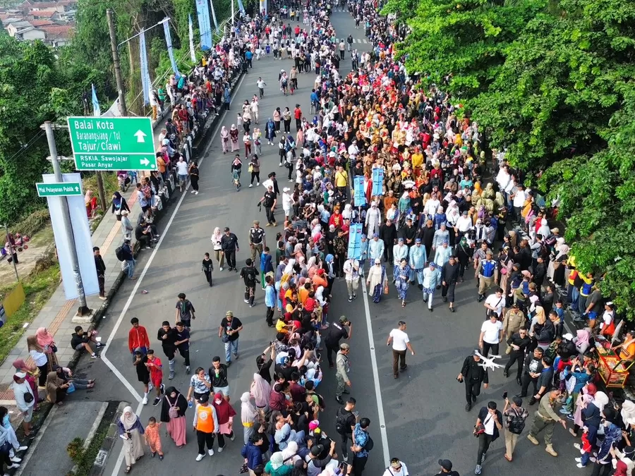 Ribuan warga tumpah ruah di acara Helaran Hari Jadi Bogor (HJB) ke-542 di Jalan Henderal Sudirman, Kota Bogor, Minggu, 2 Juni 2023.